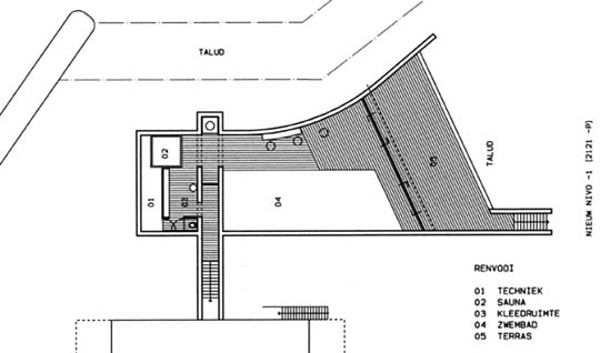 Hoewel dit plan na uitvoering nauwelijks boven het maaiveld uit zal steken, is de ruimtelijke opzet van dit zwembad zodanig geraffineerd vormgegeven dat zij waardering oogst bij de commissie. Het plan zit slim in elkaar en blinkt uit door een verfijnde detaillering en eerlijk materiaalgebruik.